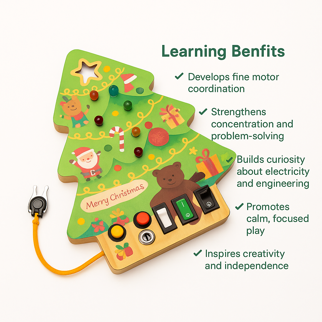 🎄 Interactive LED Play – Kids can flip, press, and turn real switches to light up different parts of their Christmas tree!